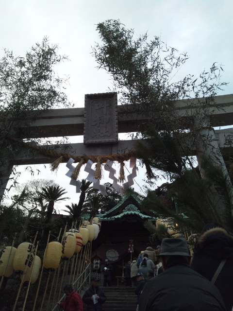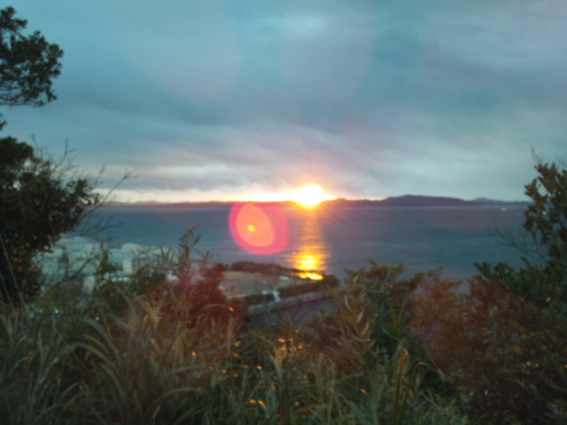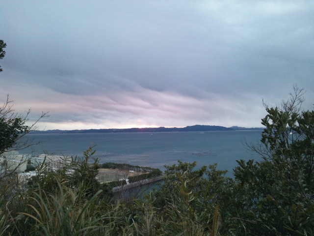 KAEKA/2015 Diary 平成二十七年 睦月 ■2015/01/01 木 ![]() 汽笛が鳴り止み、花火も終わる。人々が家路につく中、自分も帰路につく。潜水艦の電飾も密かに2015になっていた。駐車場へ向かう。途中、米軍向けのお店が集まるどぶ板通りを抜ける。 ![]() ちらほら見かける迷彩服姿の米兵はMPのようで、抑えが効いているのか、新年を迎えてさぞ盛り上がっているのだろう、と思ったら意外と大人しかった。 帰宅してまず、お風呂にお湯。やかんでもお湯を沸かして緑のたぬきで年越しそば。いや、会場に着いた時は小雨で風も強く、元旦から雪が予報される天気だったので結構寒かったのである。 お風呂を済ませるともう3時をまわっていたので、もう睡眠はとらずに朝を迎えることに。テレビを見たりコーヒーを飲んだりしているうちに、6時。それでは初日の出を見にいこう、と再び車で出発する。場所は浦賀。地図と方角から、ここからなら高いところから初日の出が見られるはず、とあたりを付けていた浦賀城址に向かう。 浦賀城址は東叶神社の裏山になる。神社の駐車場に車を停めて、まだ誰もいない境内へ。お参りをしてから社殿脇の石段を上がってゆく。途中の案内板によると、勝海舟が浦賀から咸臨丸で太平洋を横断する前に、断食をして航海の安全を祈願した所、らしい。 そして山頂へ。慰霊碑裏にある展望スペースを確認する。東京湾、そして房総半島。日の出の方角は真正面なはず。ただ、低い雲が垂れ込めているので、かなり微妙か。空は仄明るくなったけれど、辺りはまだ暗く、しかも誰もいない。いい場所だと思うのだけど、日の出スポット、というわけではないらしい。 日の出までしばらくあったので、周辺にある祠などを巡る。そうしているうちに、ひとり石段を昇ってきた。真っ直ぐ展望スペースへ行くので地元の人かと声をかけてみる。初日の出は初めてだが以前来たことがあり、初日の出にはいい場所だろうと来てみた、とのこと。 どこから? 千葉からです。というような会話をしているうちに、空はどんどん明るく。雲は一部途切れてオレンジ色に染まってきたのだけど、日の出の方角は雲に覆われたまま。館山方面には雪雲が薄いカーテン状に雪を降らせているのも見える。これは駄目かも知れんねぇ。方角はあっちですかね。いや、正面だよ。118度だ。そんなこんなしているうちに、山頂にはまた数人の人が来て総勢5人ほどに。そして6時48分、日の出の時刻を迎える。おおっ。少し染まった。でも雲が…。 ![]() ただ、日の出の時刻は水平線から日が昇る時刻なので、房総半島の山並み越しになるこの位置からだと若干遅れる。そうしてしばらく待っていると、本当に陸と雲の僅かな間から太陽が顔を覗かせた。 ![]() 2015年、初日の出。太陽が東京湾に光の橋を架けた。手を合わせる。そして写真を撮ったりなんだり(写真がぼけ気味なのはカメラが昨夜の夜景モードのままだったから)しているうちに、太陽はすぐ雲の中へ。 いや、穴場だったね。 最高でしたね。 今年はいいことあるよ。 そんな会話を交わして、下山。 ![]() 神社にはぼちぼち参拝の人々の姿。この叶神社は浦賀湾を挟んで東西に同名の神社が二つあり、こちらは「東」叶神社。せっかくなので両方参拝することに。そういえば。この神社には珍しい御守りがある。それは、こちら(東)の叶神社で御守りの袋、西の叶神社で勾玉をそれぞれ頂いて(各500円だが神社なので「買う」とは言わない)、袋に勾玉を入れてひとつの御守りにする、というもの。 神社周辺の案内板を読んだり、脇にある小さな祠手を合わせたりした後、社務所で御守りの袋を頂く。さて、西の神社に行ってみるか。そう思っていたら先ほど山頂で一緒になった彼が石段を降りてきたので、あら、行き先同じだべか、と思って訊くと同じく西も行ってみるそう。 じゃあ乗せてくわ。 え、いいんですか。 旅は道連れ…と、こういう御守りあるんだけど手にいれた? あ、行ってきます。 と、袋を頂いてきた彼を乗せて西の叶神社へ向かう。千葉からまたよくこんな所へ、と話をすると、彼は自称オタクで年末も秋葉原で過ごしたそう。で、この辺りは以前、何とかというアニメ(註:聞いたけど忘れたので後で調べたら「たまゆら」というアニメだった)の舞台となりこの神社も出てきたのだと。 ということはいわゆる「聖地」なわけだ(どうりでアニメ絵の絵馬が多かったわけだ)。 そうなんです。なので前にも来たことが。 ほう、巡礼というやつだな。 と、そんな話をしているうちに、西の叶神社へ。 ![]() こちらは結構な人。多くは地元の人のよう。きっちり右側2列に並んで参拝待ちしている。2列なので自動的に自称オタクの彼と参拝になる。その後社務所へ行き勾玉を。メノウ、水晶、ヒスイから選べるとのことでヒスイにする。ついでにおみくじも引く。末吉。このくらいが現実っぽくていい。結ばずにそのまま持ち帰る。「人間関係が複雑になりがち。事が生じた