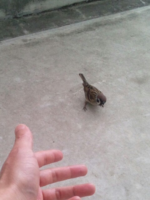 あと、この部屋のベランダすずめとの距離はいまこのくらいである。