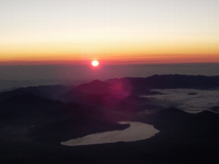 その後はのろのろと下って、途中で登山道の脇に屈みこんで吐いている白人さんに飲料水支援したりしながら10時頃に五合目着。またシャトルバスで麓の駐車場に戻り、そこで自分の車のナンバーに驚いている人達を尻目に近くの温泉へ行って砂を払ってからそのまま渋滞もなく帰宅。靴やリュックやその他砂まみれになった物を洗濯して、ベランダに干した後、撃沈。富士山の麓にいた前回までとは違い、東京から無泊二日の徹夜登山はちょっときついかも知れない。けれど、少しは六根、清められたでしょうか。