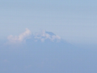 機窓から、雲海を貫いて頂を覗かせている富士山が見えました。