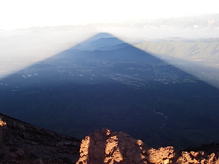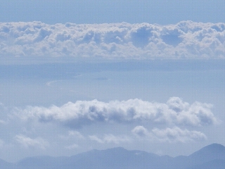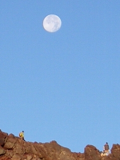 有明の月。富士山頂は竹取物語で不死の薬が燃された場所。