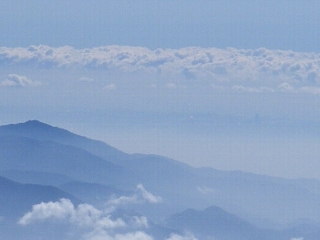 左に大山と右の中央付近、微かにランドマークタワー