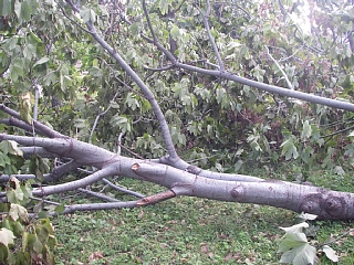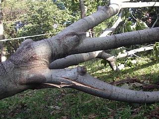 倒れた際の衝撃だろう。裂け目の入った枝。