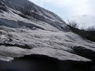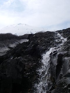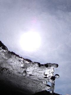 Diary 川が生まれる場所 登山口からしばらく歩き、残雪に接近。 雪融け水の滝。通称「幻の滝」。 残雪脇の岩肌を伝う流れ。 雫滴る残雪の縁。ここが川の生まれる場所。 滲み出すように、残雪は水になり。 水は雫へと姿を変え。 そして、生まれたばかりのせせらぎに加わる。 時間を停めると、氷のような。 柔らかな、春の陽射を背景に。 ※ここで生まれたせせらぎは、山を下る途中で全て砂礫の中に浸み込み地下水となり、やがて (…と言っても、相当長い時間を経て) 富士山麓のどこかの湧水になります。そしてまた、そこから川が生まれます。 この雪融け水が直接、ここから山を下り渓流となり、瀬となり淵となり海へと注ぐ「川」になっているわけではありませんので、その点、ご了承下さい。 |