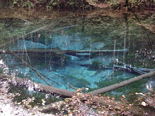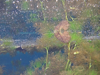 碧い水面の下はこんな感じ(カメラは防水)。泳いでいたオショロコマは写らず。