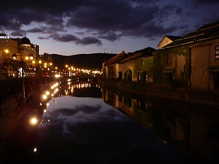 新しく開通していた京極から小樽へ抜けるトンネルを通り、小樽市内へ出る。以前、小樽市内に来る時によく使っていた秘密の駐車スペースがまだあったので、そこに車を停め、市内をぶらっとしている間に夕暮れ。小樽運河に明かりが灯る。