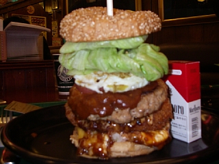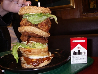 ハンバーガーとしてがぶっと食べることは不可能(ナイフとフォークが付いてくるので、分解して食べる)だが、以外と普通に食べられるサイズではある。
