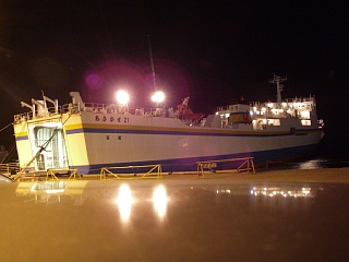 満腹の後、ターミナルへ行き乗船手続き。本日の走行距離は342Km(3994km)
